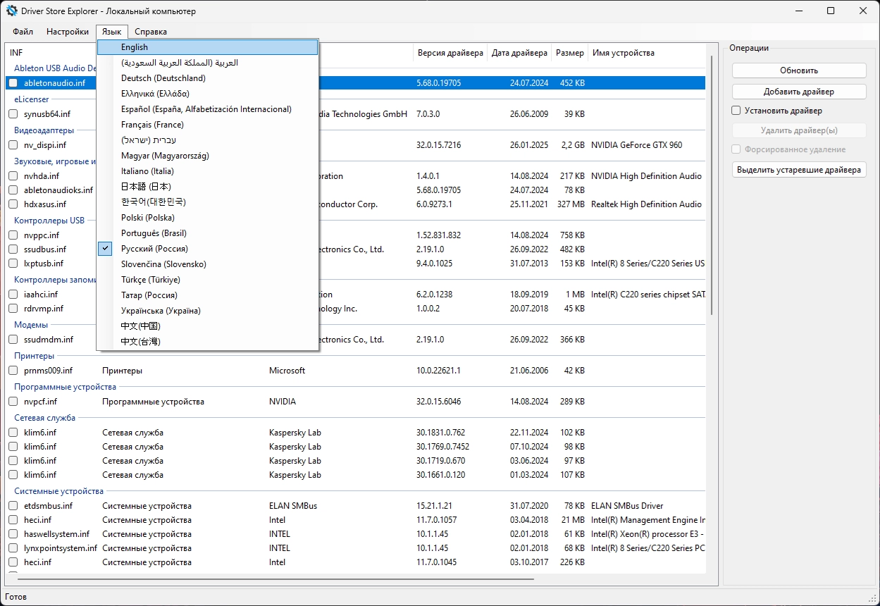 • Поддержка экспорта выбранных драйверов.